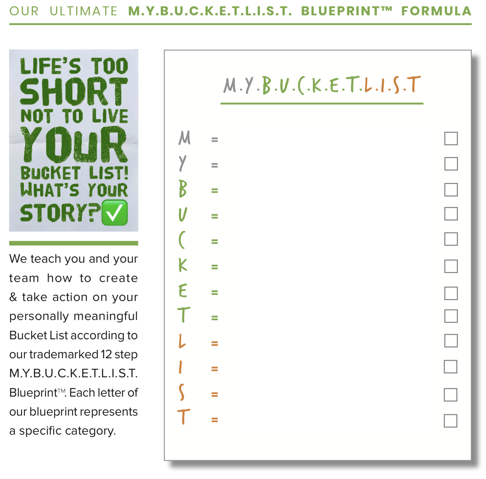 By using the MYBUCKETLIST Blueprint, I can now set my sights on goals I had never before even dreamt of and achieving them. I found that I never set my goals high enough because I was taught to set them within reach. That kept me from dreaming big and I never learned how to take enough action to achieve the really big things in life so I settled for average.
